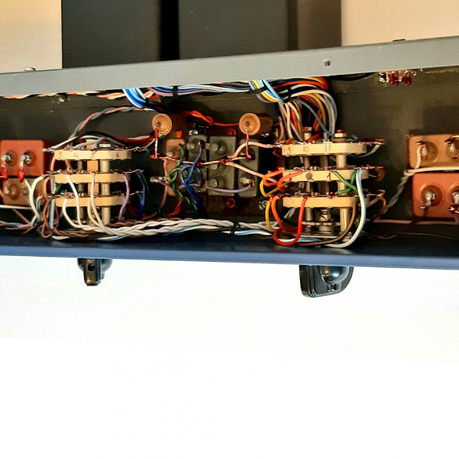 Standard version: ATTEN SEL, LOW, HIGHT are stepped switches, BOOST, ATTEN, BANDWICH are potentiometers. Color is RAL 5001 green blue.